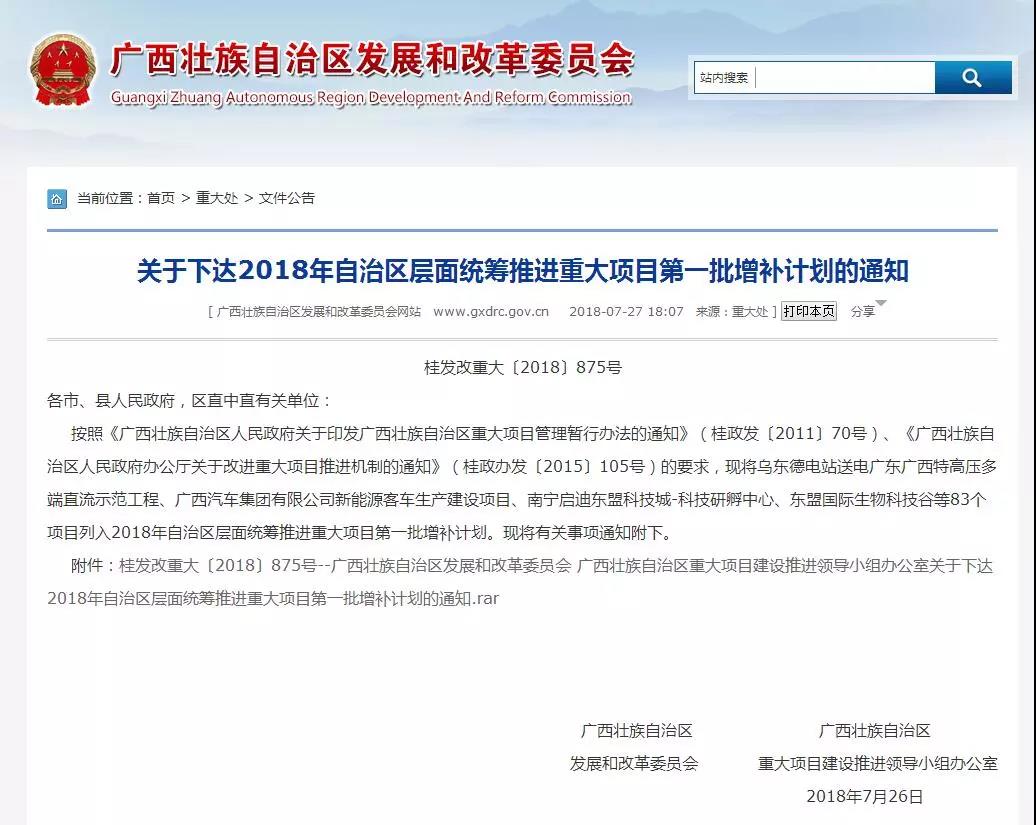 桂發(fā)改重大〔2018〕875號(hào)文件公布了